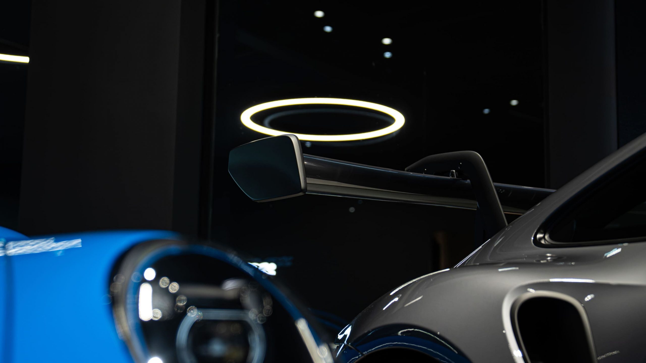 Ganzkörperaufnahme eines Sportwagens im Wagenwerk Showroom
